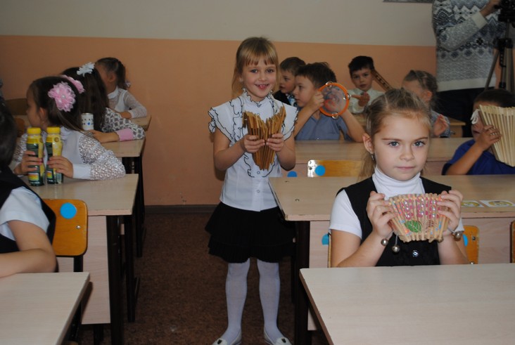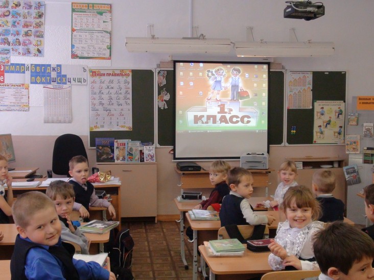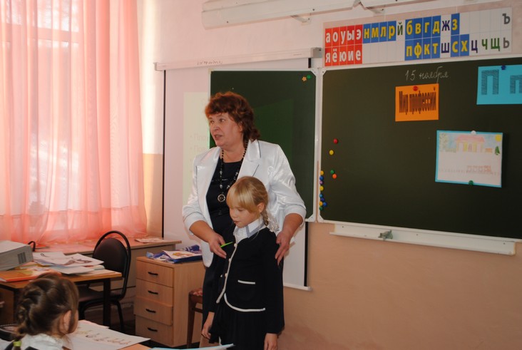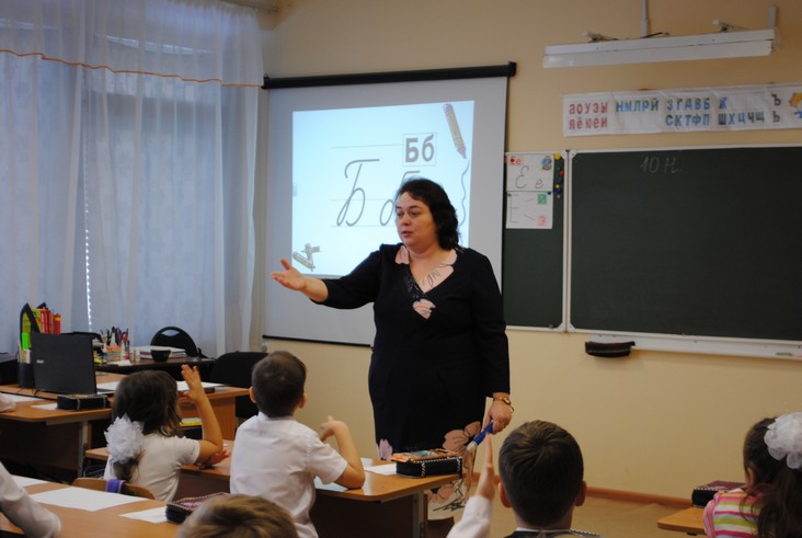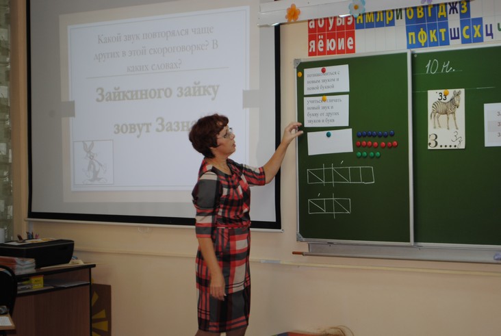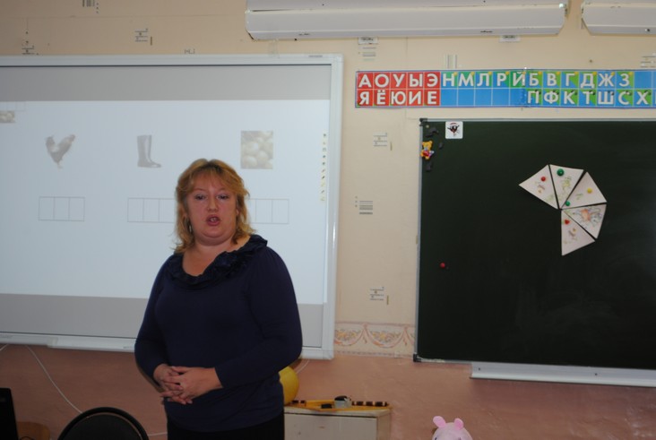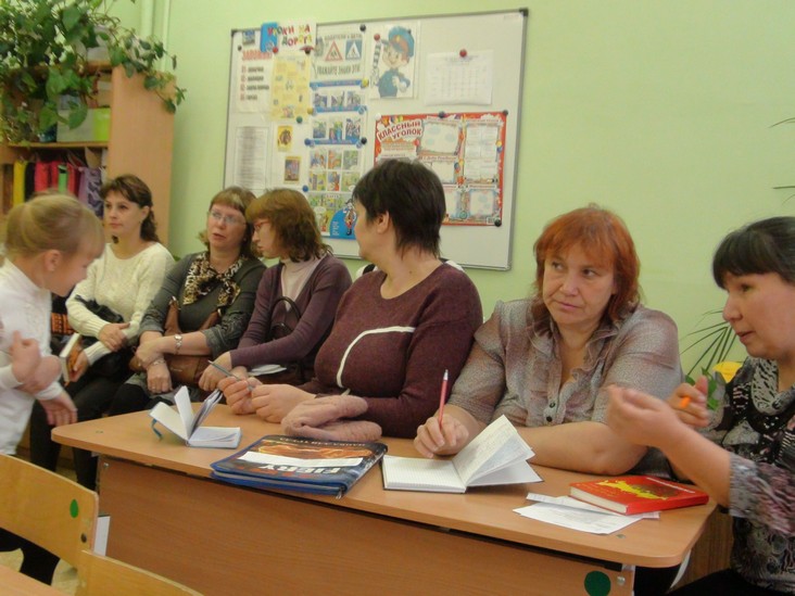 Педагоги представляют свой опыт по ведению уроков в соответствии с ФГОС, а воспитатели - смотрят.