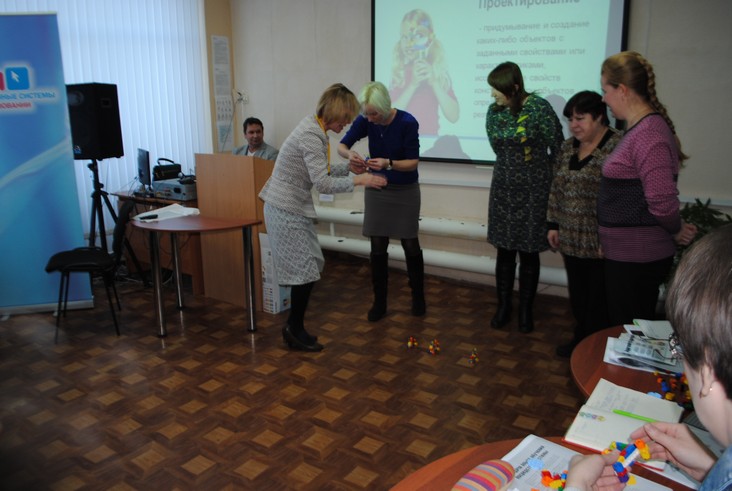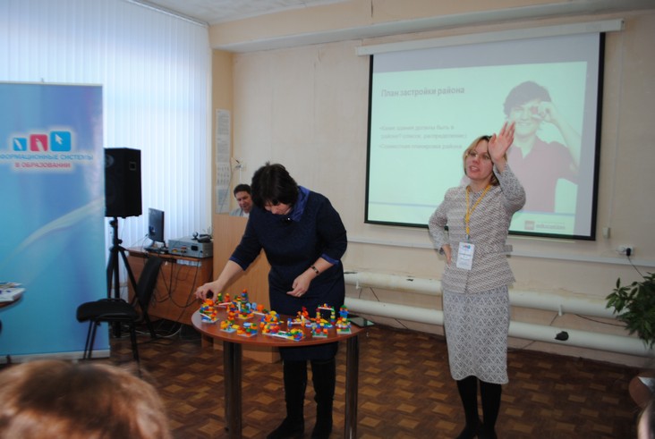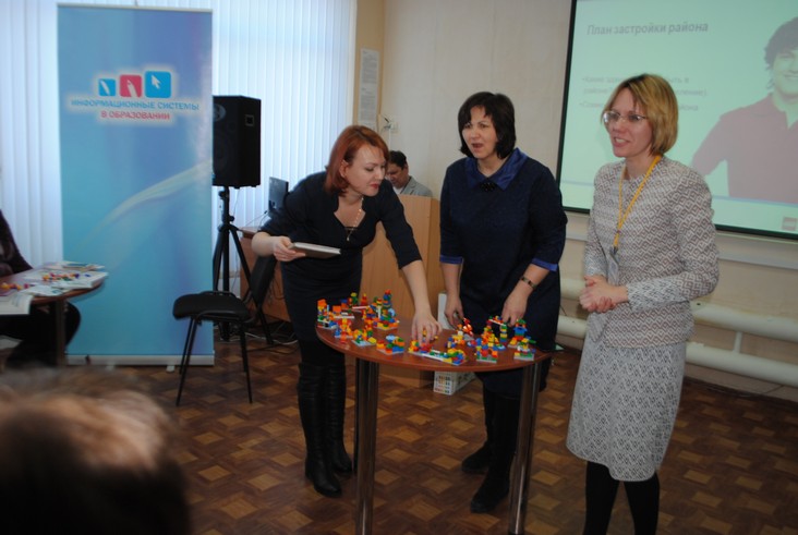 Представители компании "Информационные системы в образовании" Зильберман М. А. и Никитенко А. Н. делились опытом внедрения конструкторов Lego в образовательный процесс ДОУ.