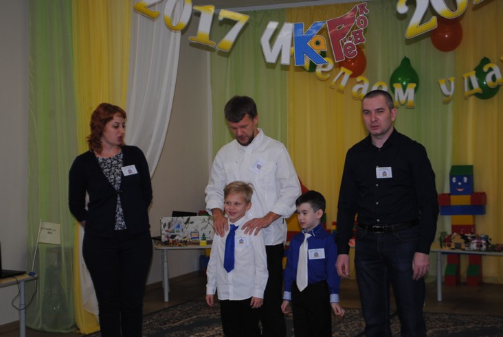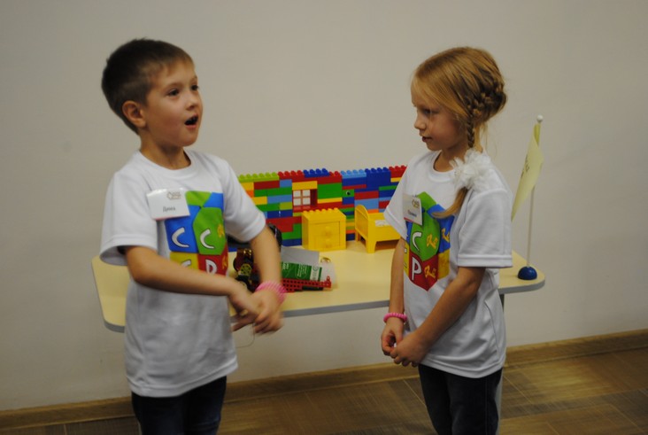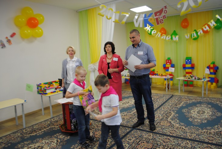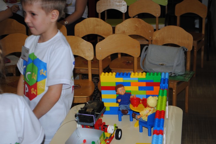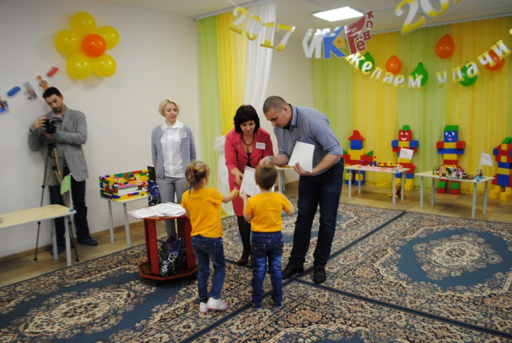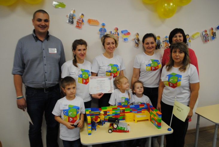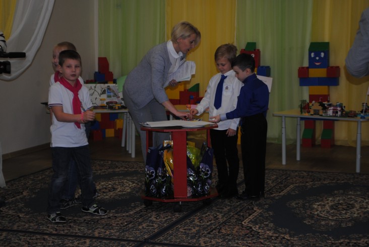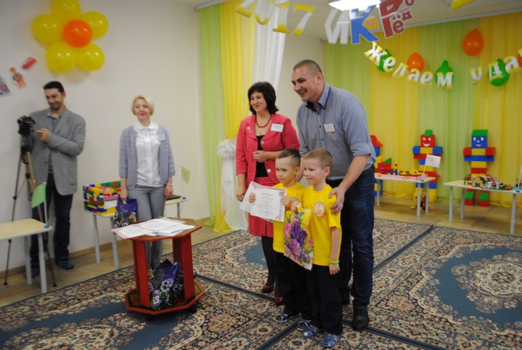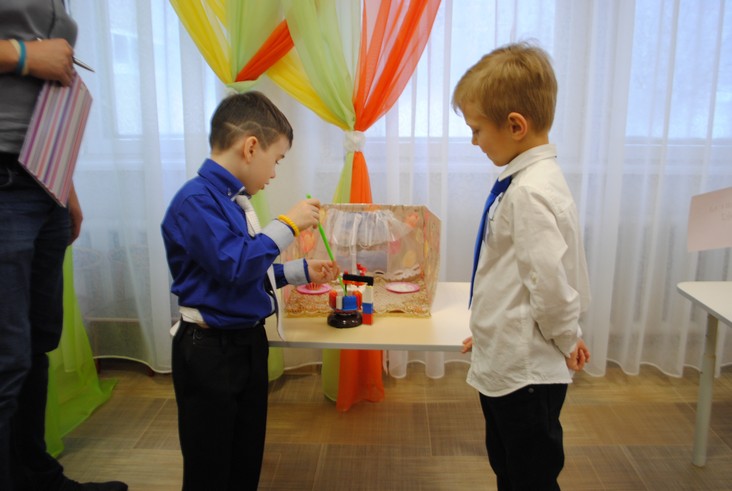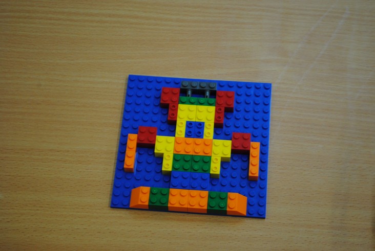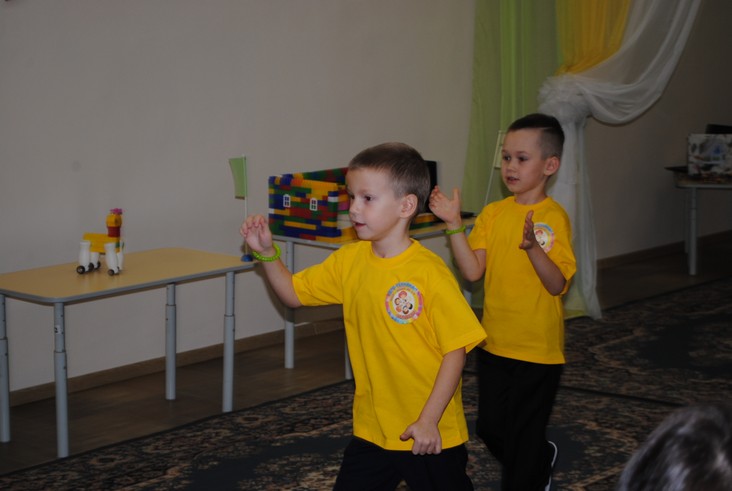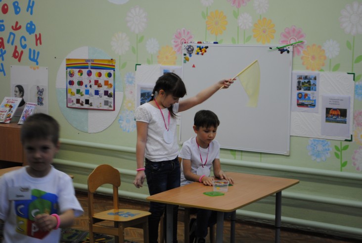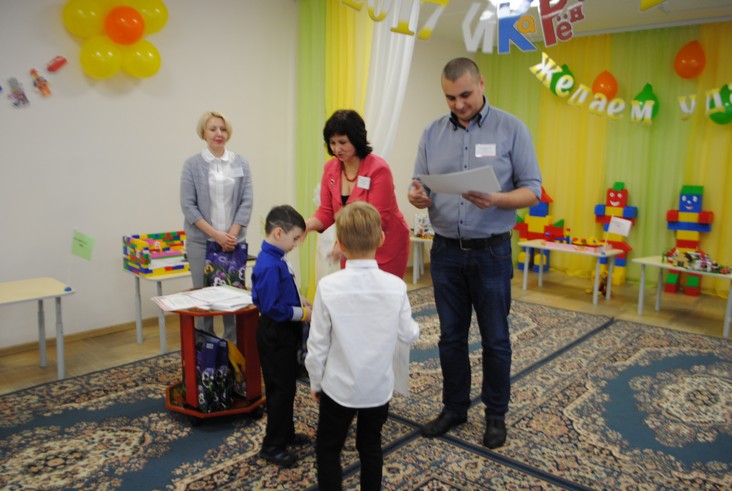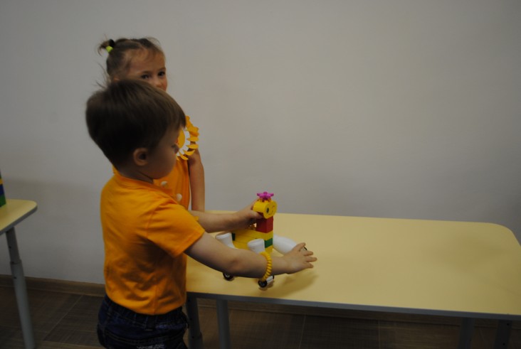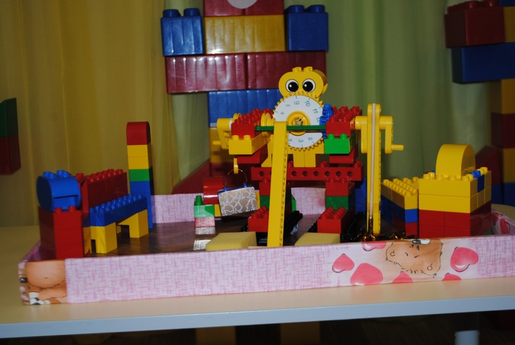 1 конкурсное испытание «Половинка моя (ЛЕГО-мозаика)». Здесь воспитанники соревновались в выполнении симметричной мозаики относительно вертикальной оси. Лучше всех справилась команда детского сада № 2.
