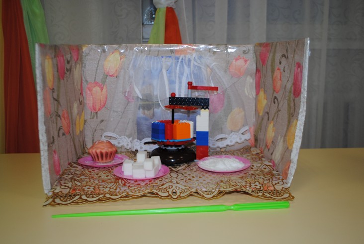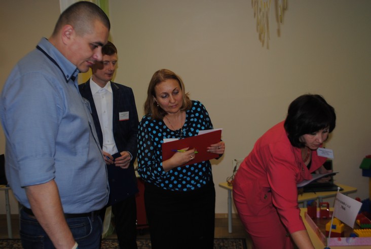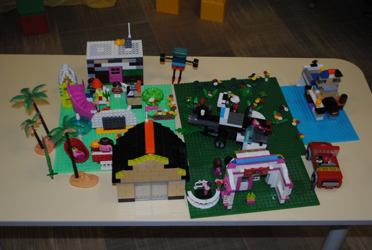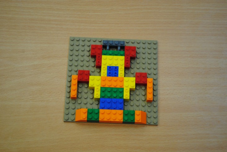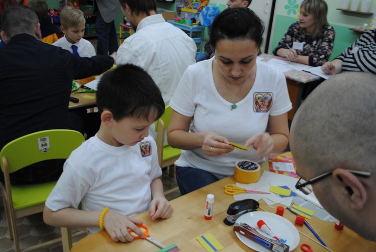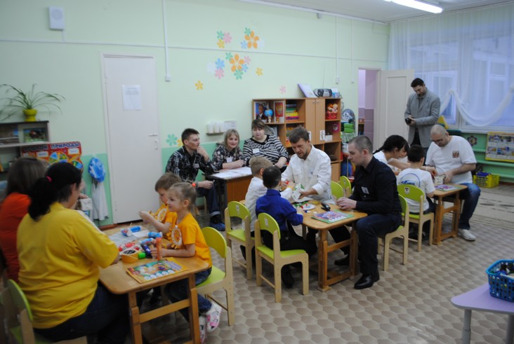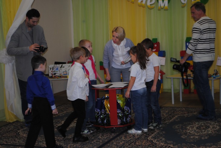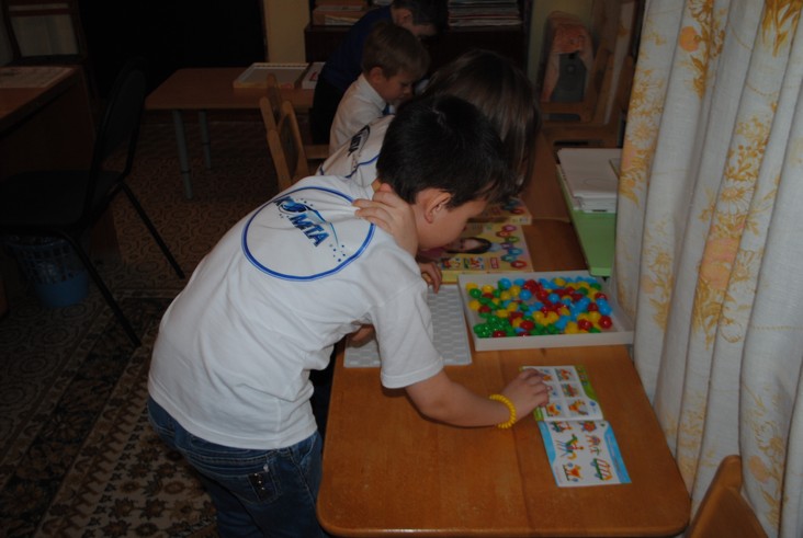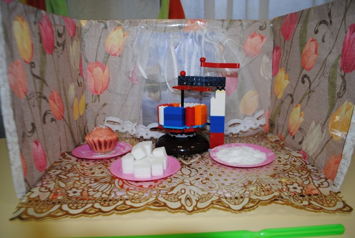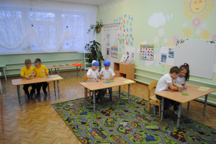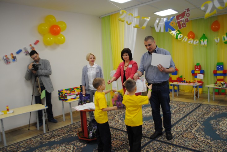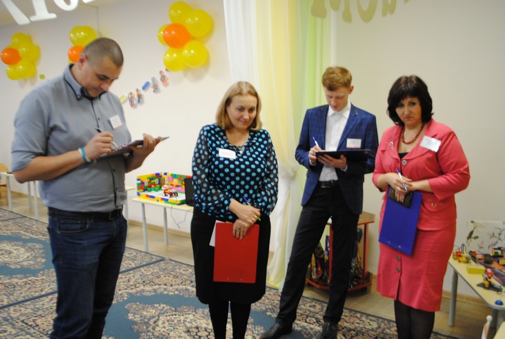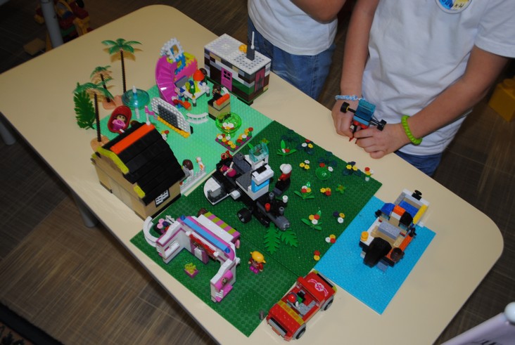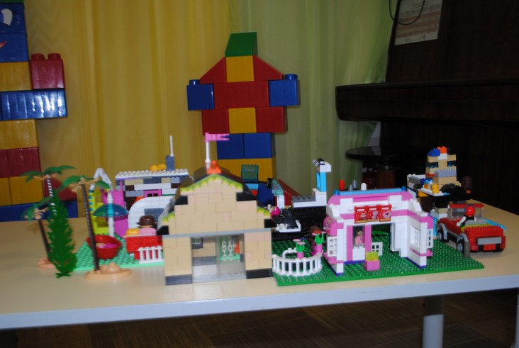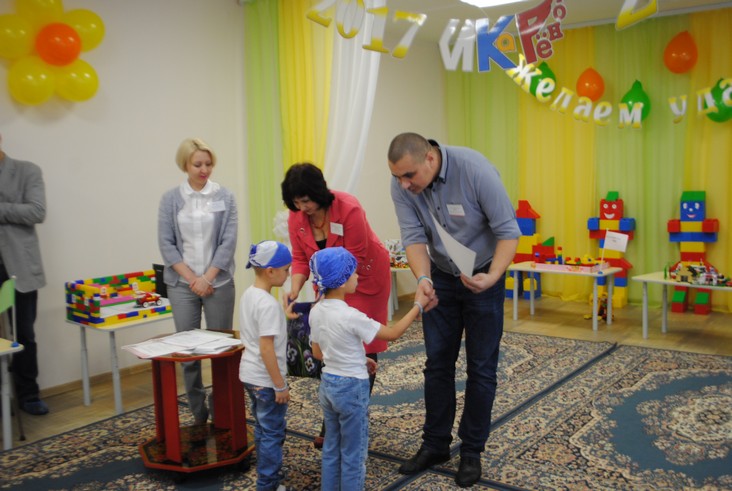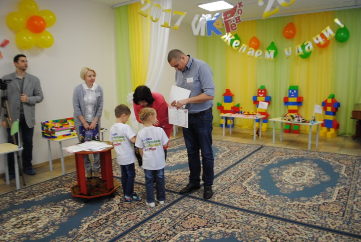 1 конкурсное испытание «Половинка моя (ЛЕГО-мозаика)». Здесь воспитанники соревновались в выполнении симметричной мозаики относительно вертикальной оси. Лучше всех справилась команда детского сада № 2.