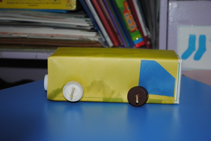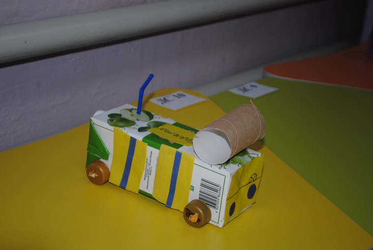 2 конкурсное испытание «Семейный автомобиль». Команды в составе 2 воспитанников и 2 родителей конструировали из предложенного подручного материала модель семейного автомобиля для участия в соревновании на движение по наклонной плоскости длинной. И снова победила команда детского сада № 2.