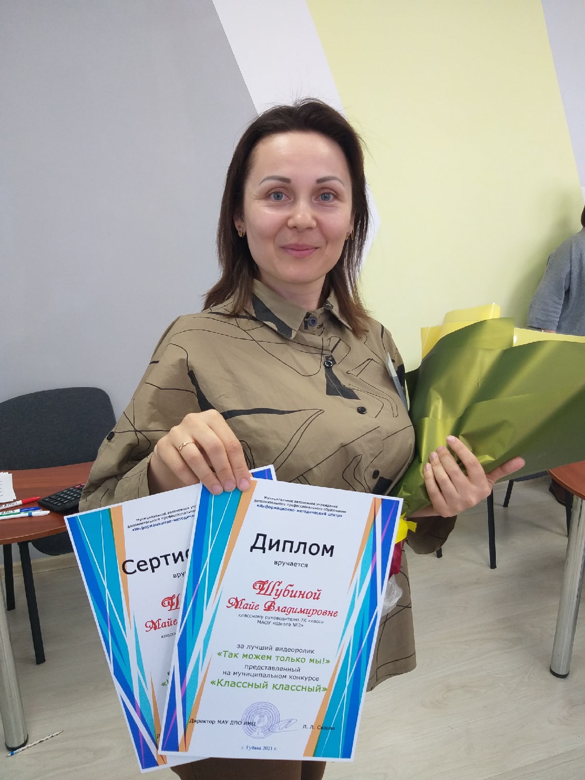 - Диплом за лучший видеоролик получила Майя Владимировна Шубина, классный руководитель 7 кадетского класса школы №2