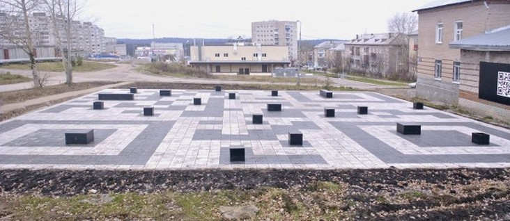 QR-сквер у театра-студии «Доминанта». Губахинцам очень повезло в том, что в городе есть свой собственный театр. У здания «Доминанты» в 2014 году появился деревянный птенец радужного птицеящера Пермского периода Игорь Горыныч, которого с легкой руки главы города Александра Борисова сейчас горожане называют просто Игорьком. Рядом с ящером – черно-белая площадка, представляющая собой QR-код сайта города, читаемый из космоса.