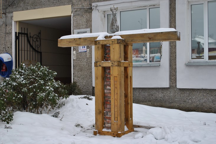 Арт-объект «Капсула времени» у Центральной библиотеки. Мексиканский скульптор Луис Вальверде увековечил память о старой Губахе, использовав для своей скульптуры старую балясину и кирпичи, подобранные на руинах верхнегубахинского «города-призрака».