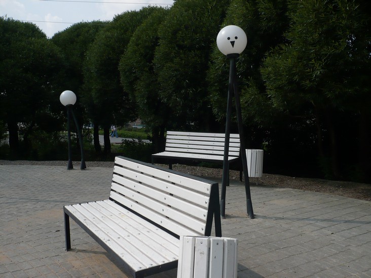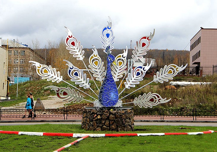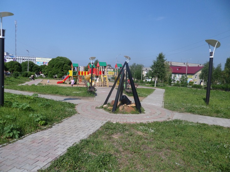 Сквер «Гнездо Синей птицы» и арт-объект «Горная страна. Небольшой уютный сквер с оригинальными фонарями в виде шаров-«птенцов», скамейками и песочницей для малышей. Еще одно сооружение – аттрактант (от англ.: «привлечение», «притяжение») вызывает самые разные ассоциации. Кто-то воспринимает его как костер, у которого можно погреться; кто-то – как шалаш, в котором можно укрыться от всех невзгод. Может быть, потому он и притягивает к себе?