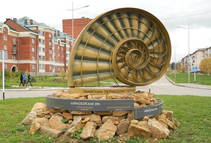 Памятник Пермскому периоду. Самый молодой арт-объект, появившийся в Губахе летом 2015 года, в виде ракушки-аммонита. Частью арт-объекта является идущая по кругу полоса, на которую нанесена шкала геохронологической истории Земли.